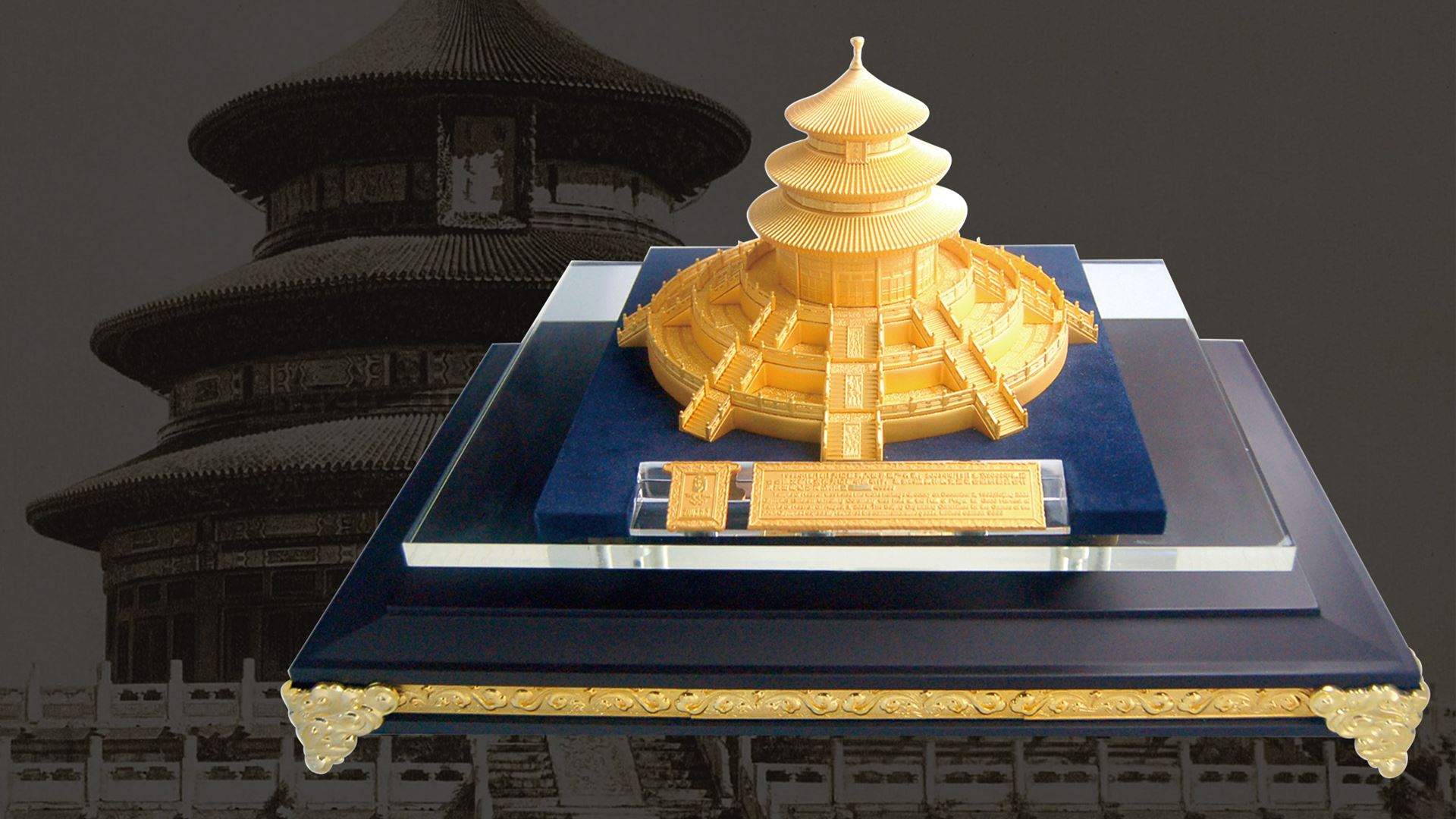 针对祈年殿在设计制造过程中出现的技术难题,WAGON特别商请出已退休的天坛总工程师徐志长先生参与祈年殿技术探讨,受益颇多。最终设计团队决定,整个摆件以祈年殿1:350的比例设计制作,主体结构高122mm,宽210mm,由101片大小锌合金组合而成,再加上24K瑞士绒金,完美匹配祈年殿富丽华贵的气势。在WAGON设计团队的一致努力下,摆件成功克服了有弧度金属难以紧密拼合的难题,再结合技术人员精湛的浮雕工艺,将原建筑物的艺术造型及优美细节展现的淋漓尽致。